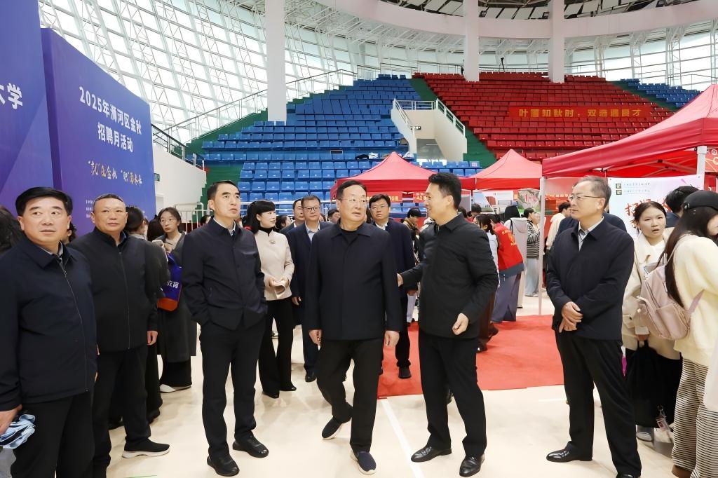 金秋送岗促就业,校企携手启新程。11月7日,河南省毕业生就业市场豫南分市场暨信阳师范大学2026届毕业生秋季双向选择洽谈会(以下简称“双选会”)在我校体育馆成功举办。本次“双选会”由河南省教育厅主办,河南省大中专学生就业服务中心、信阳师范大学承办,信阳市人力资源和社会保障局、浉河区人民政府、浉河区人力资源和社会保障局协办。校党委书记王文鹏携在校校领导班子成员、各学院党政负责人到场指导。